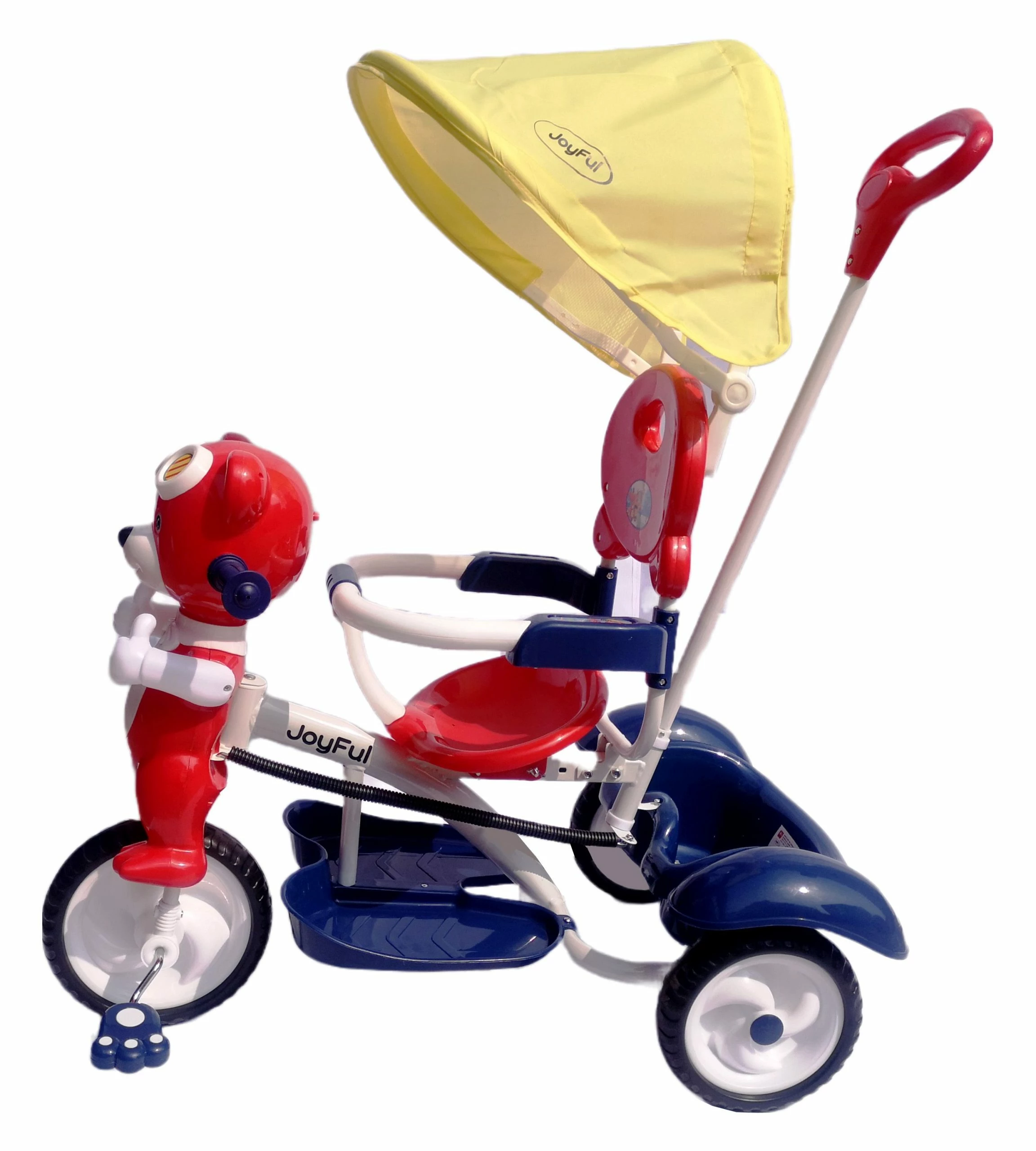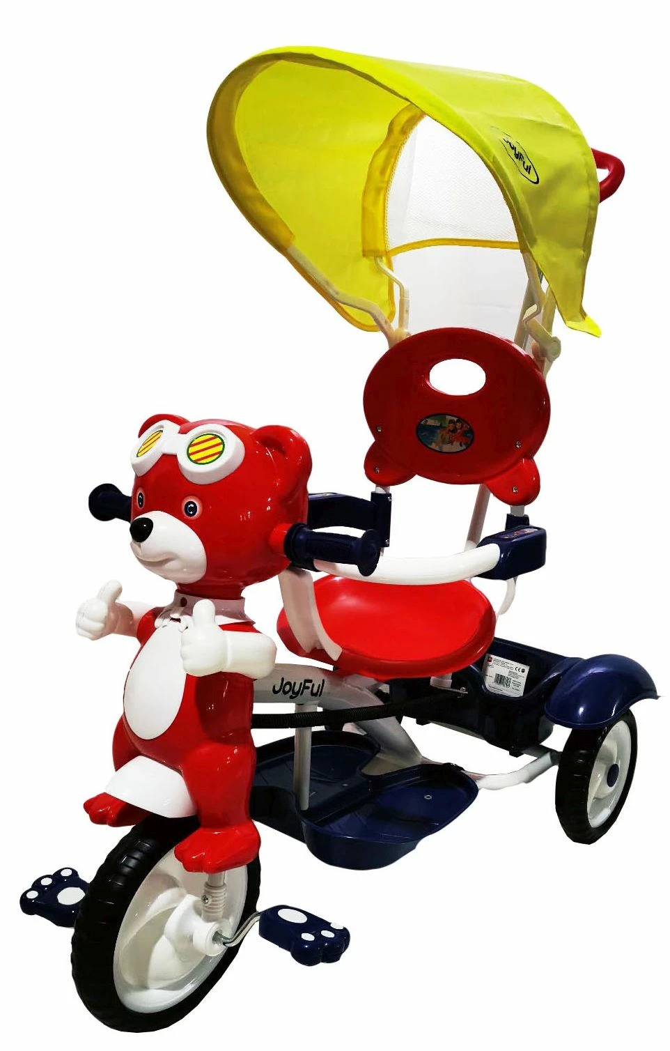 Παιδικό Τρίκυκλο Ποδήλατο Joyful Κόκκινο Αρκουδάκι Πιλότος Με Τέντα Και Καλάθι