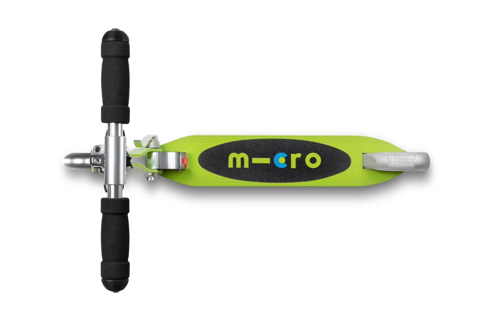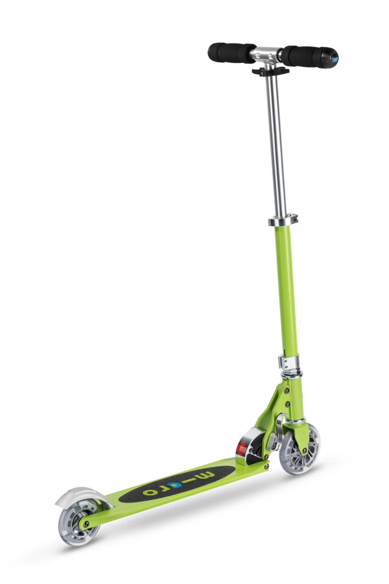 Το αυθεντικό δίτροχο πατίνι Micro Sprite τώρα με φωτιζόμενους τροχούς LED! Για παιδιά από 6 ετών Ρόδες LED Κατασκευή από αλουμίνιο Αντοχή βάρους έως και 100 kg Ρυθμιζόμενο ύψος τιμονιού (63 – 95 cm) Αναδιπλώνεται για να το μεταφέρετε εύκολα παντού (διαστάσεις διπλωμένο 64 x 11 x 22 cm) Μέγεθος σανίδας: 35 x 10 cm Μέγεθος τροχών: 120 / 100 mm Υλικό τροχών: PU Με Kickstand Βάρος μόλις 2,7 kg Πατενταρισμένη, Ελβετική σχεδίαση Χρώμα: Λαχανί