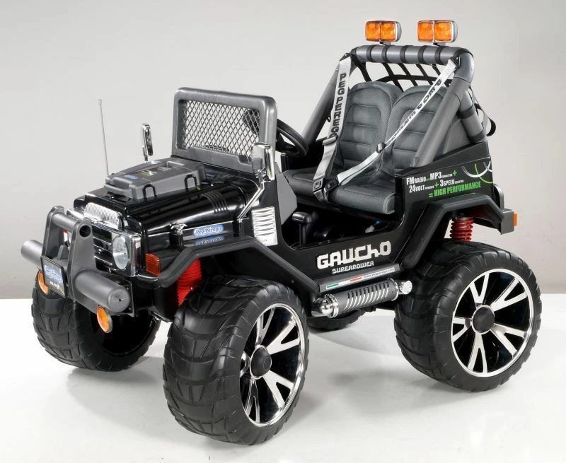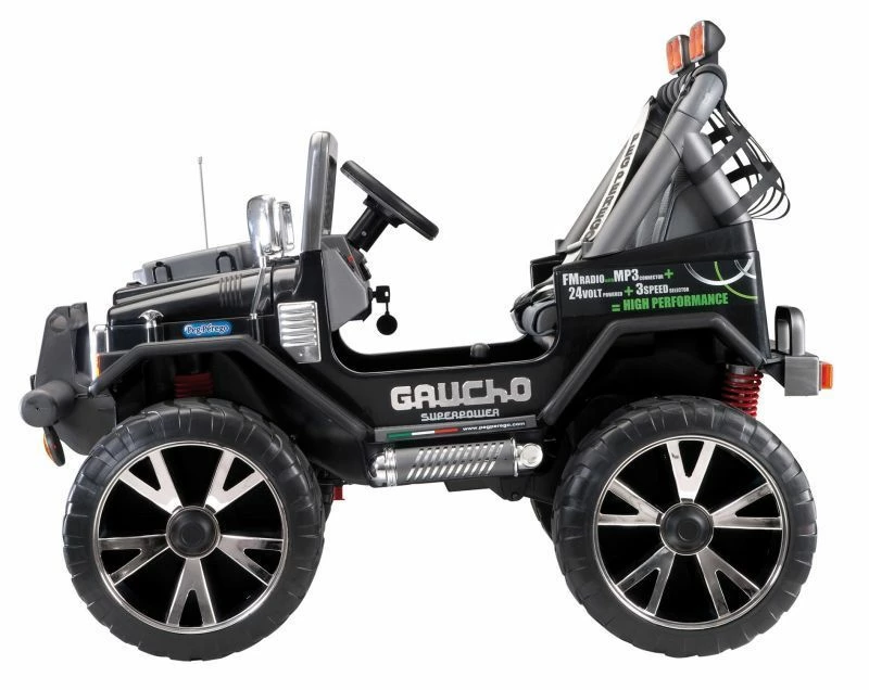 Δύο φορές δύναμη, δύο φορές διασκέδαση! Gaucho SuperPower είναι η απόλυτη παιδική διασκέδαση! Το παιδί σας θα «ταξιδεύει» μαζί του στο στυλ με όλα τα “έξτρα”. Αυτό ισχυρό SUV μεγέθους, έχει τα μοναδικά, μακροχρόνια λάστιχα “QuietRide” με ισχυρή αντοχή για μεγάλη έλξη σε οποιαδήποτε επιφάνεια. Νέο μαύρο χρώμα, χρωμιομένα μέρη και τροχοί ,σχεδιαστικά καθιστούν αυτό το Gaucho να φαίνεται εξαιρετικά επιθετικό και ισχυρό.