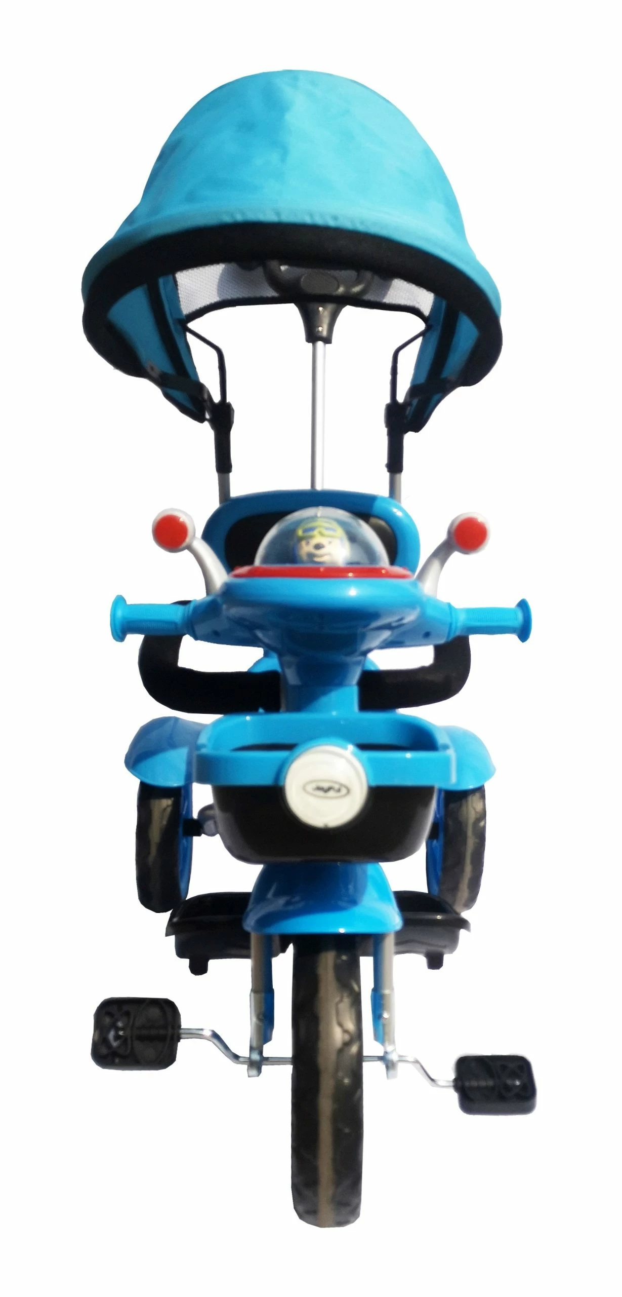 Τρίκυκλο ποδήλατο με τέντα, καλάθι, υποπόδιο και μπάρα προστασίας.