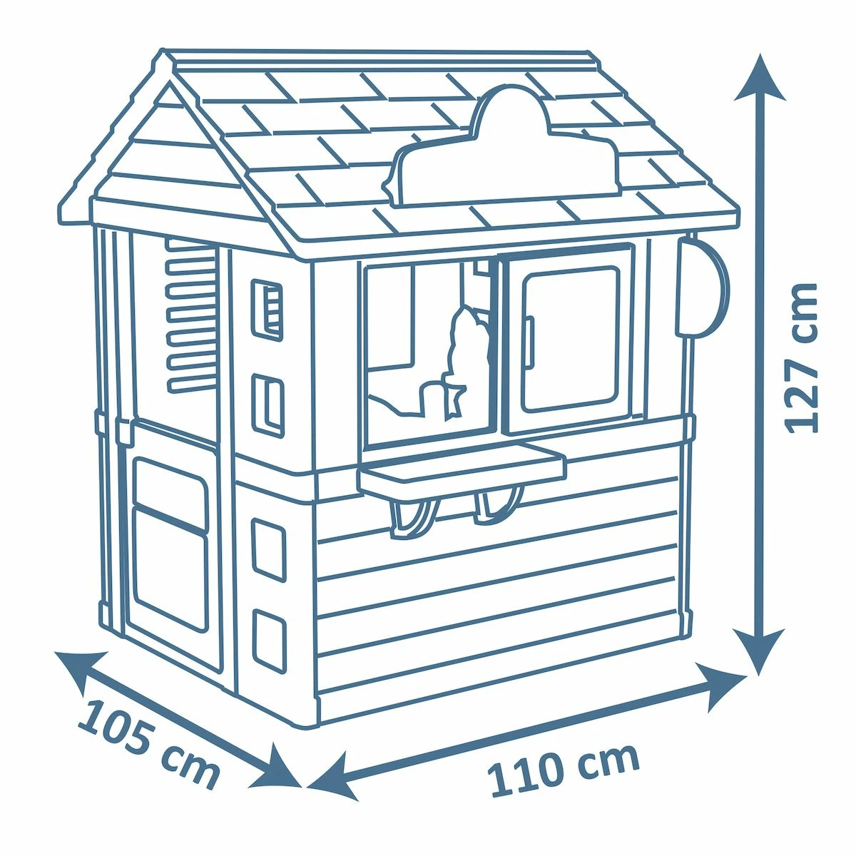 Εξοπλισμένο με μισή πόρτα, 2 παράθυρα με περσίδες και συρόμενο παντζούρι, το παιδότοπο δίνει τη δυνατότητα στα παιδιά να ετοιμάσουν κάτι γλυκό!